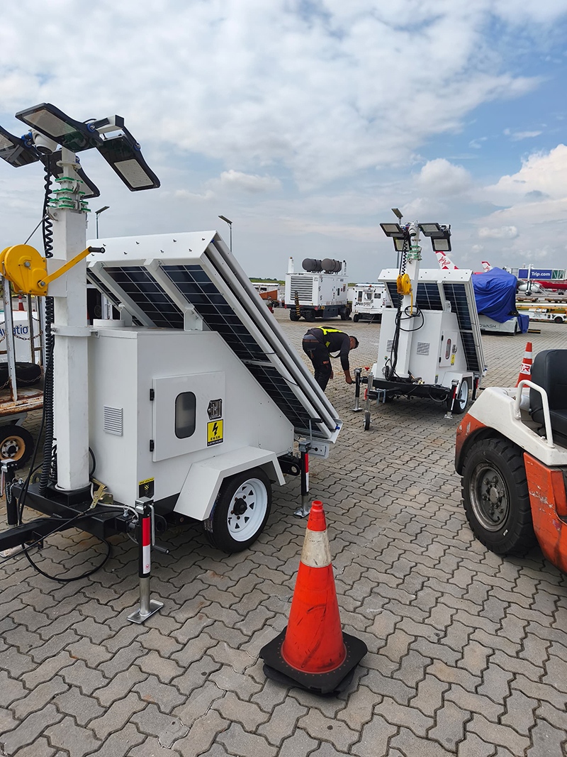 The mobile solar light tower features a 7-meter hydraulic lifting system and four 150W high-brightness LED lamps. Powered by solar energy, it provides wide-area illumination, stable performance, and eco-friendly operation—ideal for construction sites, emergency response, and outdoor events.