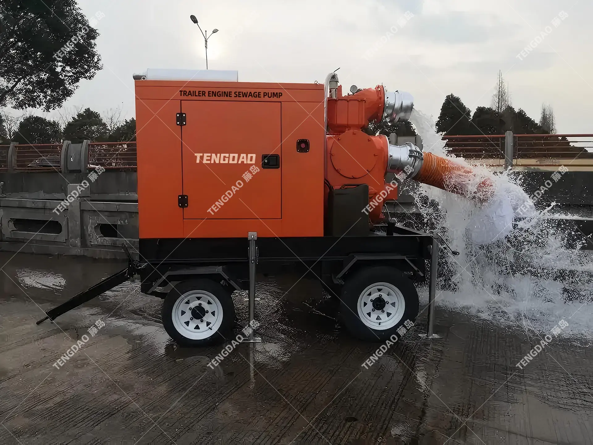 Trailer-Mounted Engine-Driven High-Power Self-Priming Sewage Pump