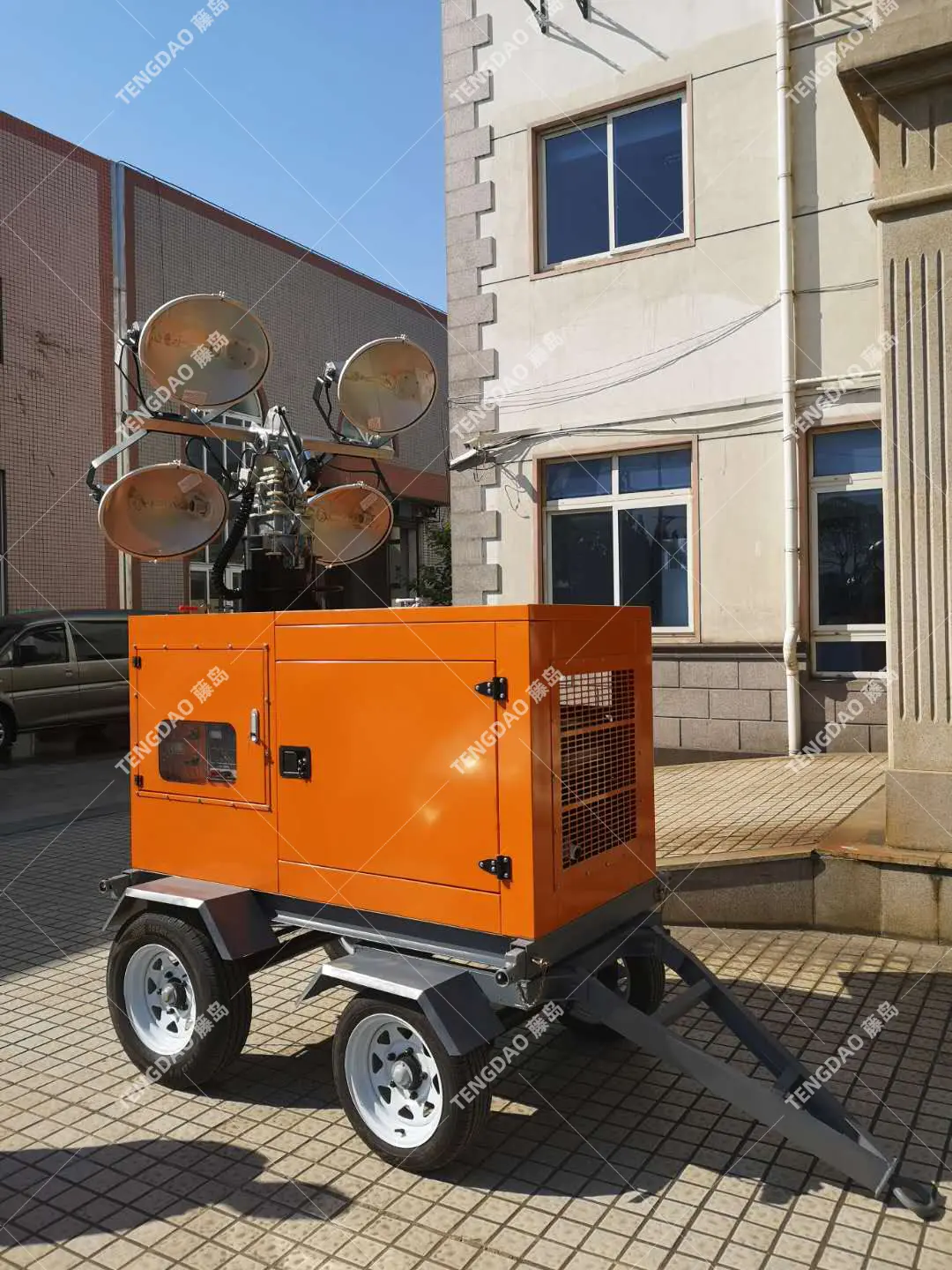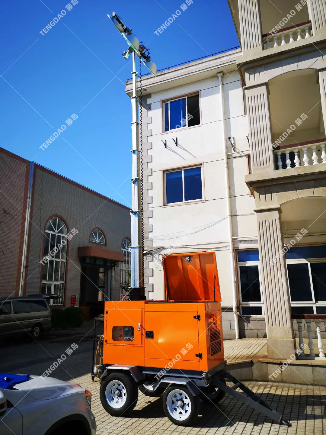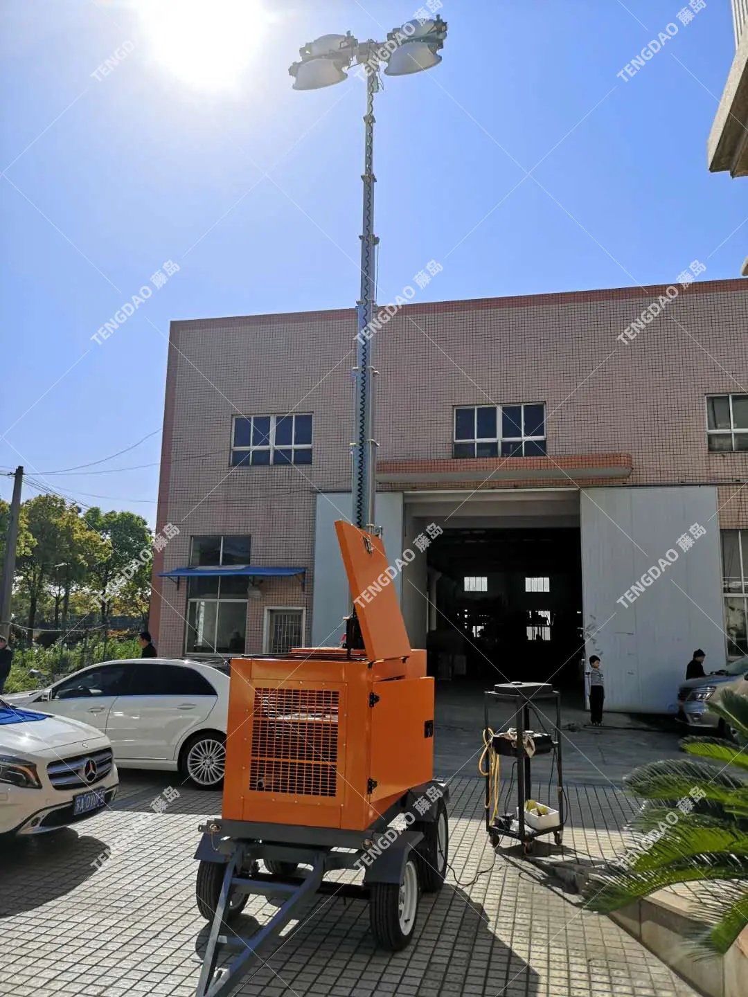 Mast Height: Hydraulic lifting mast extends up to 9 meters (29.5 feet) for elevated light coverage across large areas.